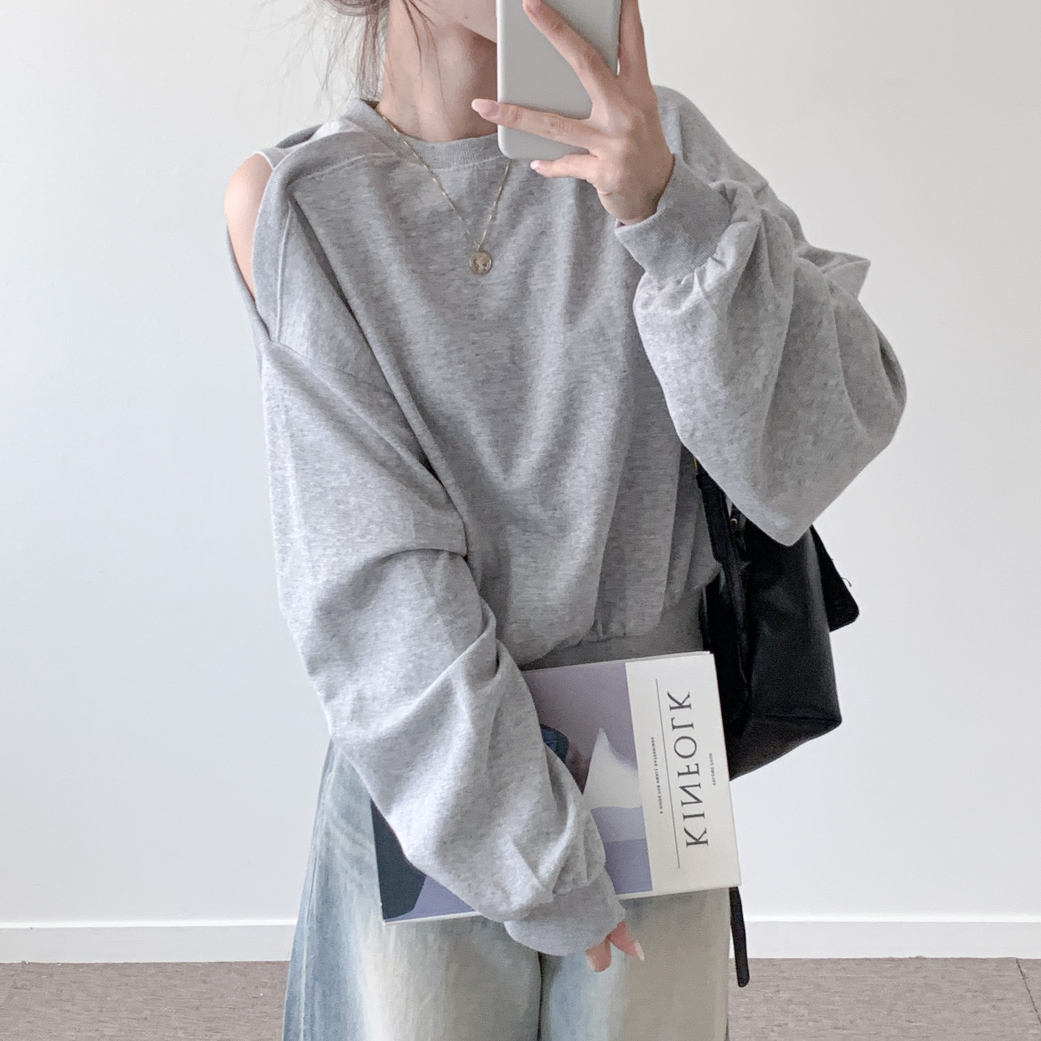 (당일) [어깨트임/언발] 무지 라운드 언발 오프숄더 어깨트임 맨투맨 (4color)