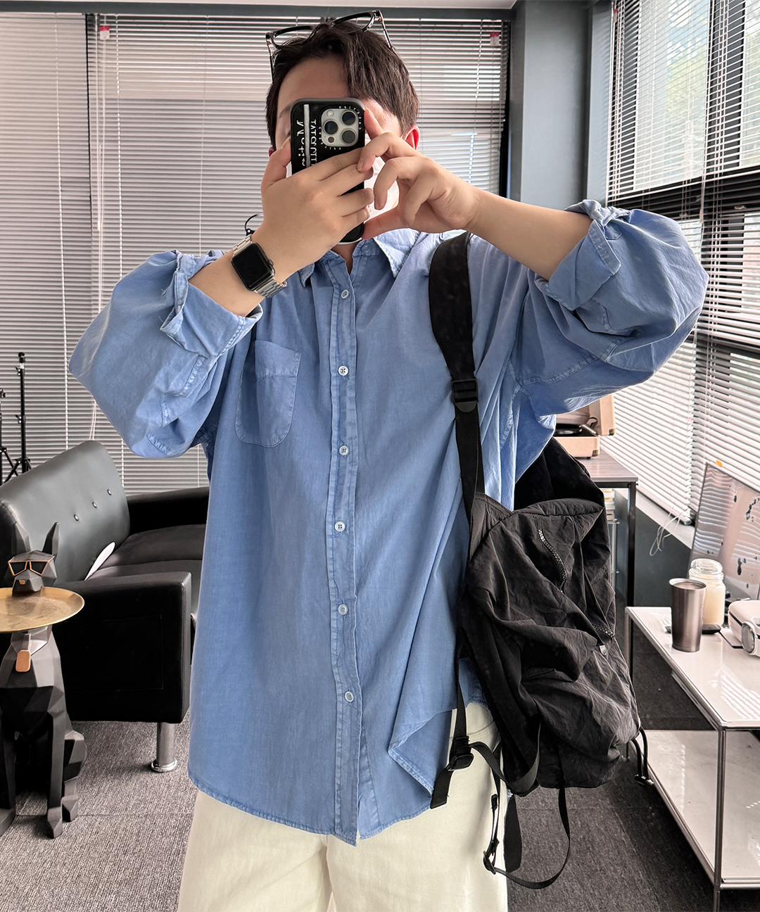 [남친룩] 남자 오버핏 피그먼트 긴팔 하늘색 소라색 셔츠_7color