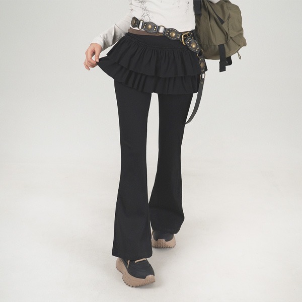 [스판낭낭/대박편해] 캉캉 치마 레이어드 스판 부츠컷 블랙팬츠 치렝스 레깅스 치마레깅스 스판바지 레이어드룩 데일리룩 편한코디 가을신상 가을룩
