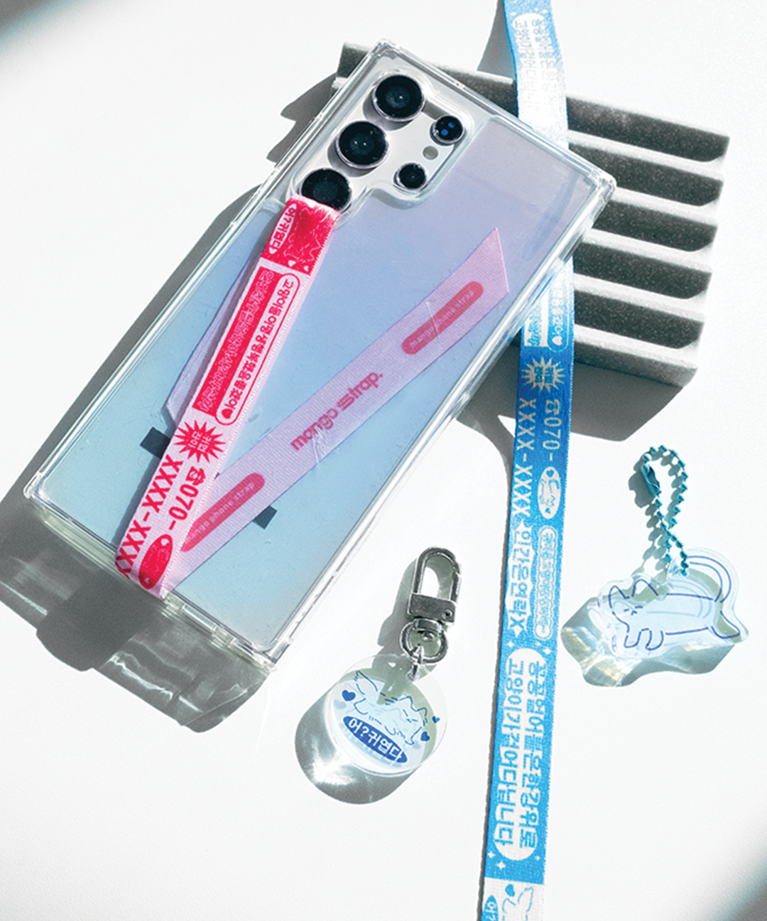 핸드폰 스트랩 핑거스트랩 스트랩 줄 고리 꽁꽁 얼어붙은 한강 위로 고양이가 걸어다닙니다