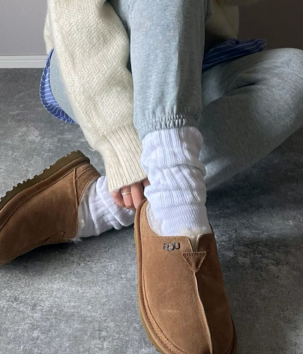 미국 어그 뉴먼 양털 슬립온 체스넛 블랙
