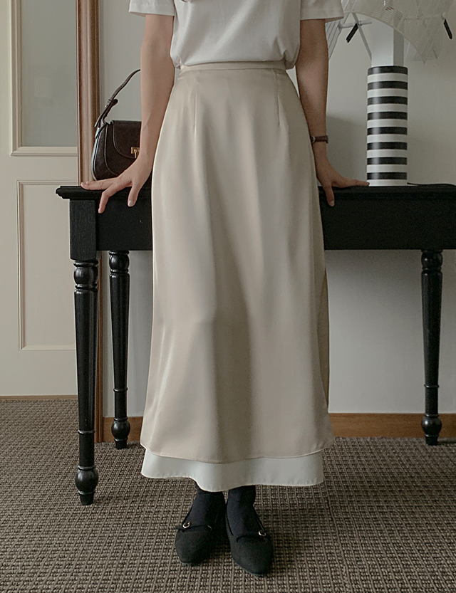 메이힐 뒷밴딩 레이어드 롱 스커트 77849
