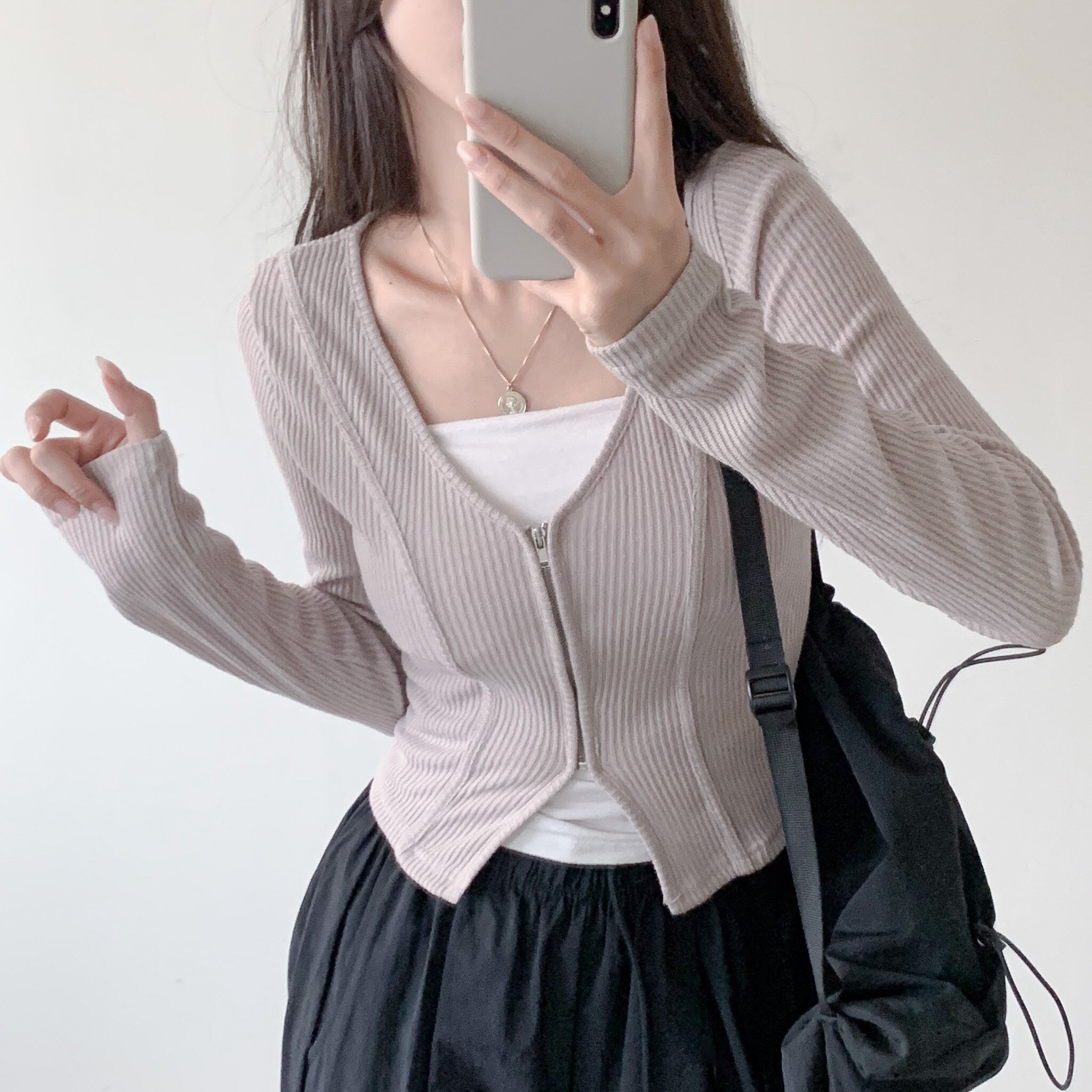 (당일) [날씬핏/라인] 브이넥 지퍼 긴팔 가디건 (3color) 시즌오프
