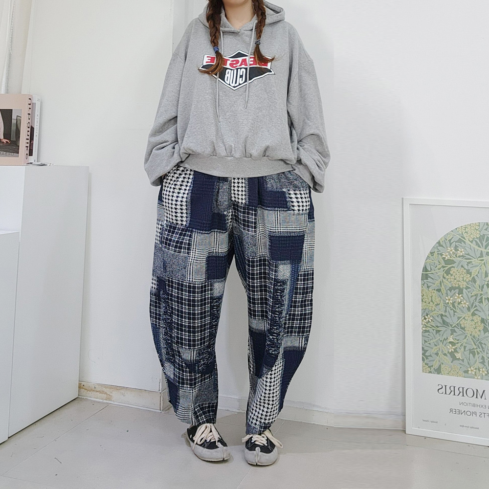 빅사이즈 아방한핏 8899 체크패턴 벌룬 항아리바지 배기팬츠