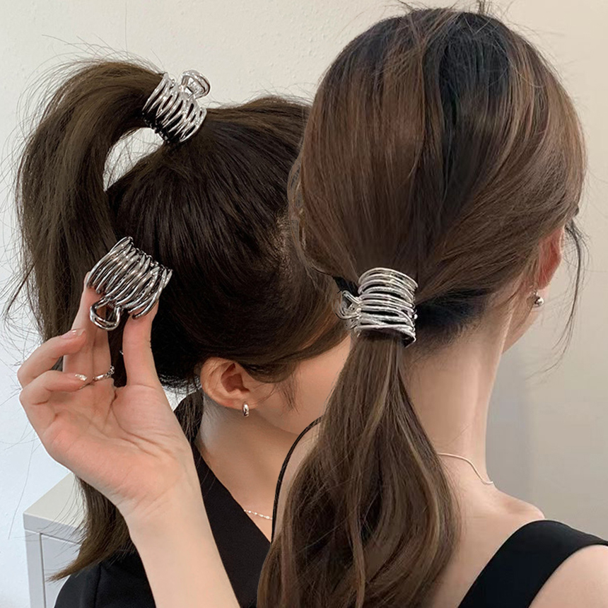 실버 메탈 묶음 머리 포니테일 둥근 원형 미니 헤어 액세서리 집게핀 미니메탈포니헤어집게핀