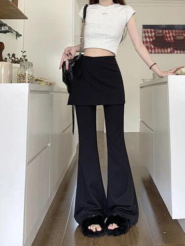 한식구 하이웨스트 레이어드 팬츠 치마바지 봄 여름 가을 블랙 부츠컷 랩스커트 팬츠