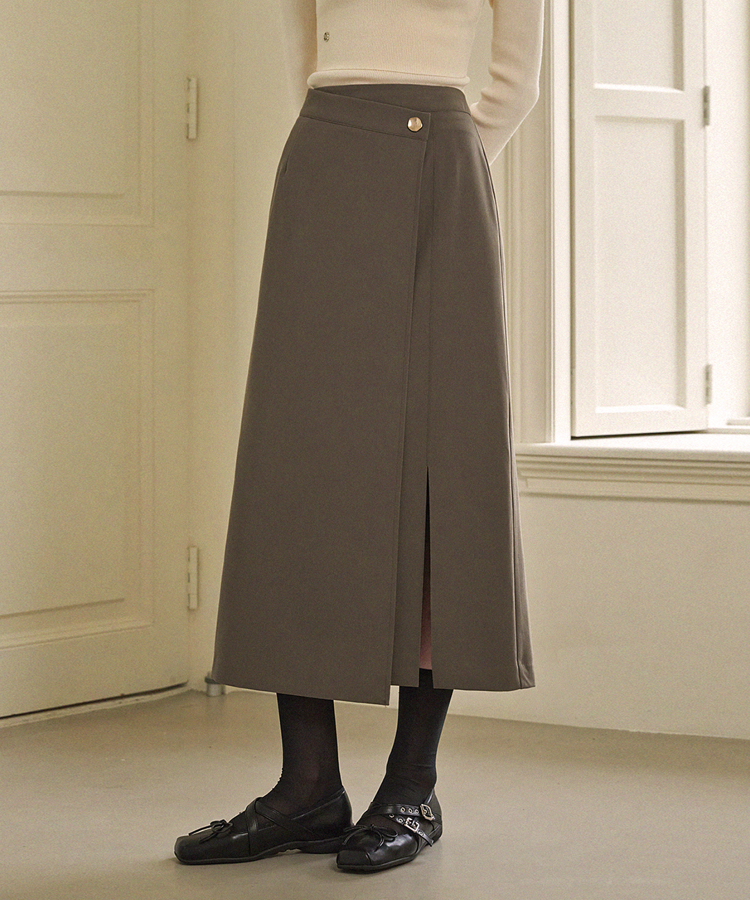 [25-36] 브론즈 랩 버튼 롱 스커트 (봄/가을/데일리룩/오피스룩/데이트룩/하객룩/출근룩/격식룩/랩스커트/일자핏/롱/고급/슬릿/빅사이즈/자체제작)