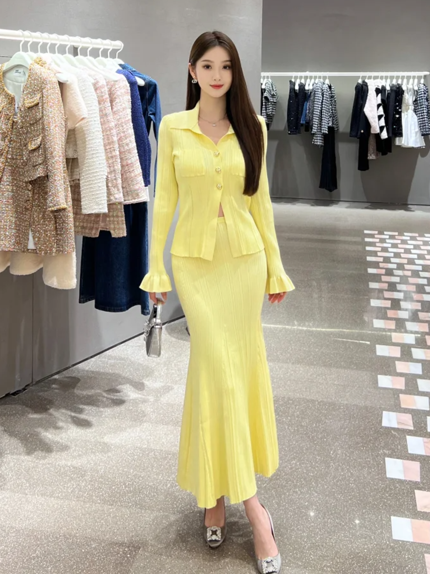 (2color) 엘딘 슬림 카라 니트 투피스 셋업