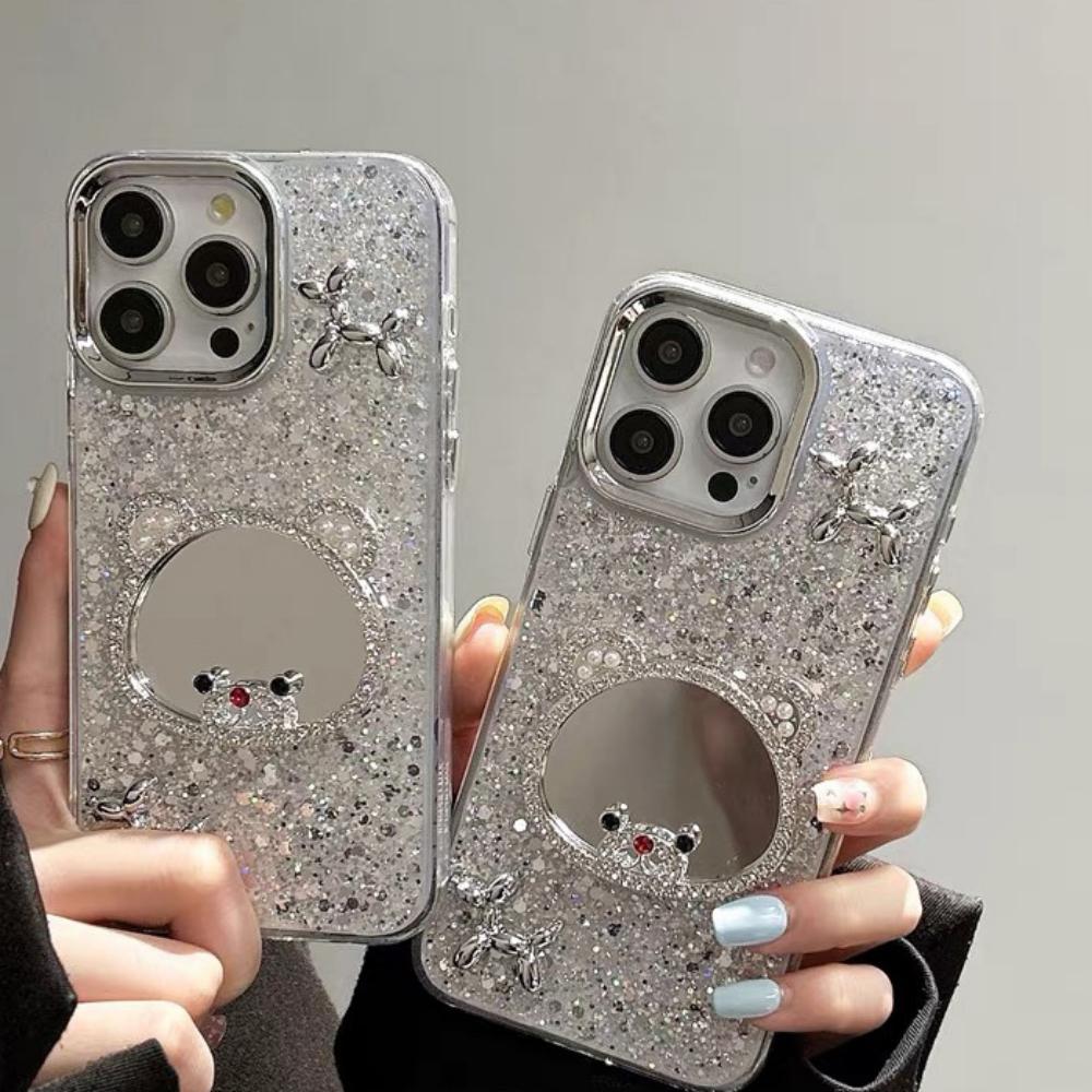 당일⭐ 아이폰16 프로 큐빅 거울 케이스 실버 미러 메탈 프레임