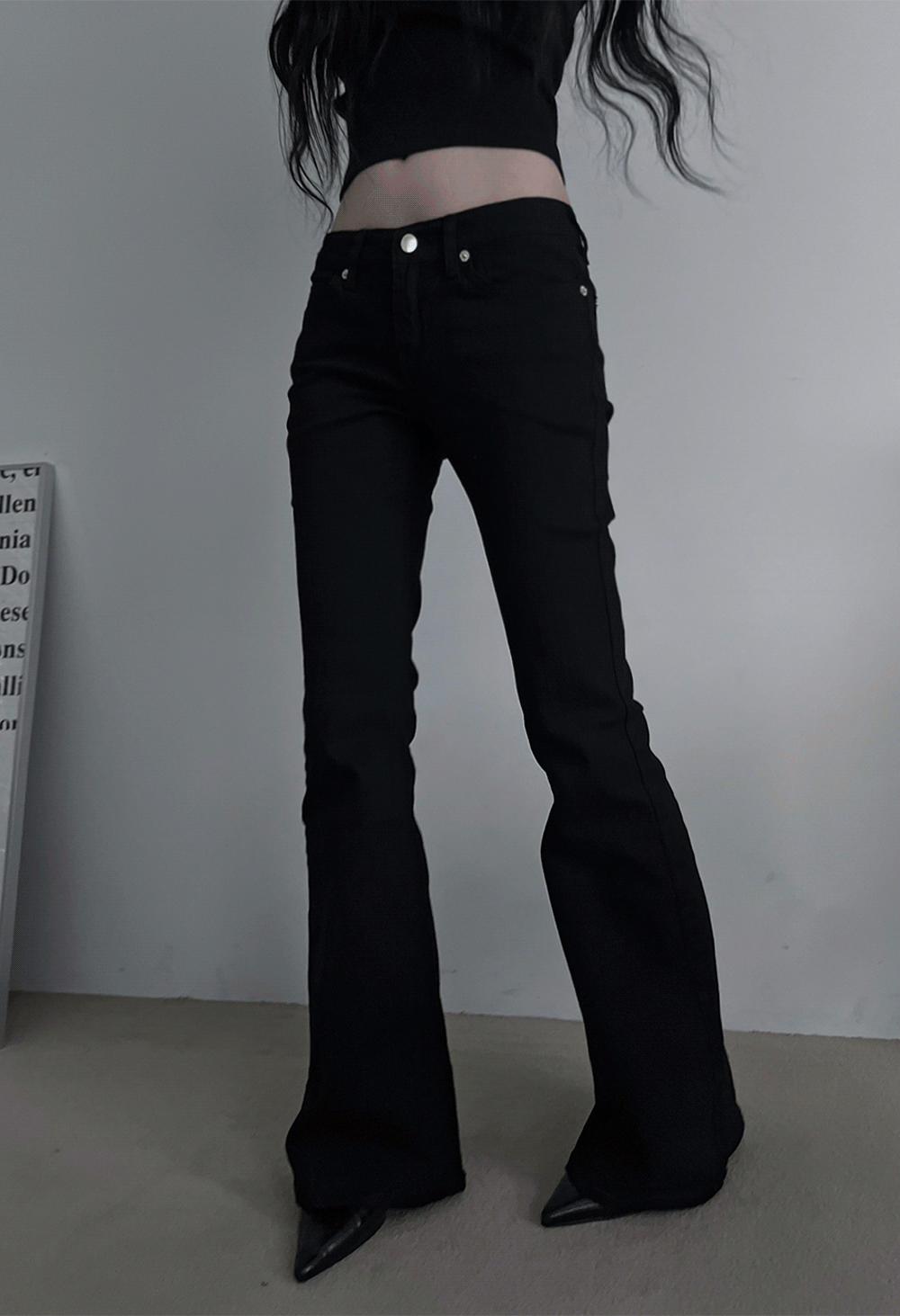 low rise black bootcut denim