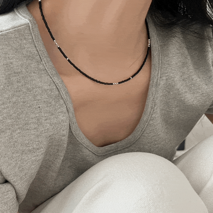[써지컬] 특가할인/ 심플 유광 블랙 라운드 비즈 크리스탈 담수진주 목걸이