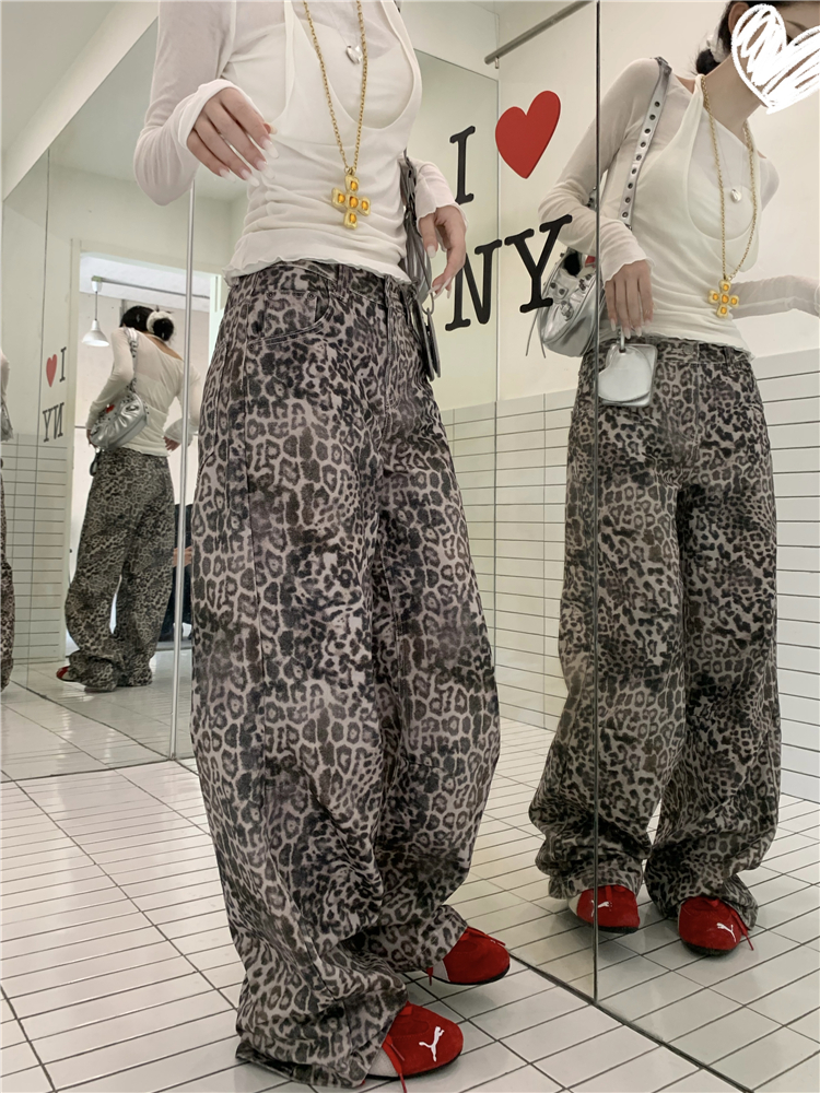 [힙한코디/포인트룩] 캐주얼 스트레이트 힙 호피 레오파드 롱 와이드 팬츠