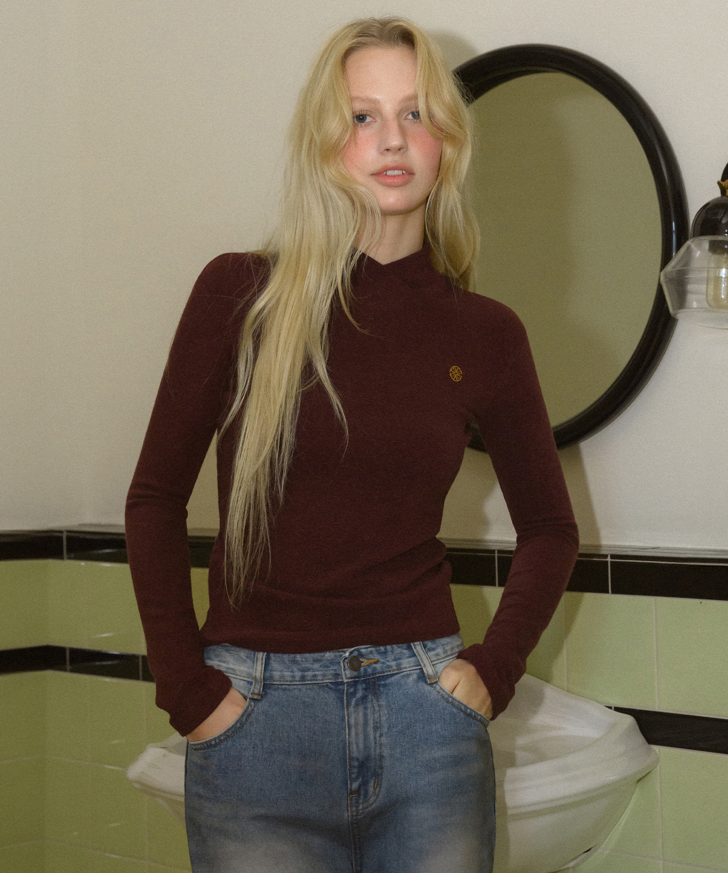 [LINE] 앙고라 다이애그널 터틀넥 티셔츠 (3c)