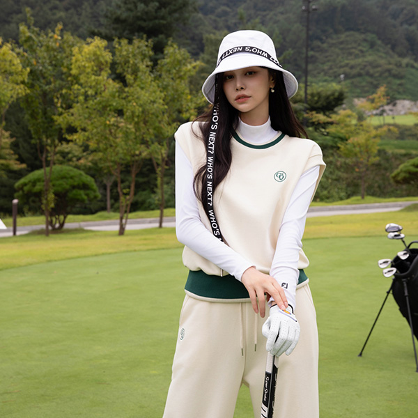 [패턴퀸 GOLF] 라운드 배색자수 골프조끼 #111581