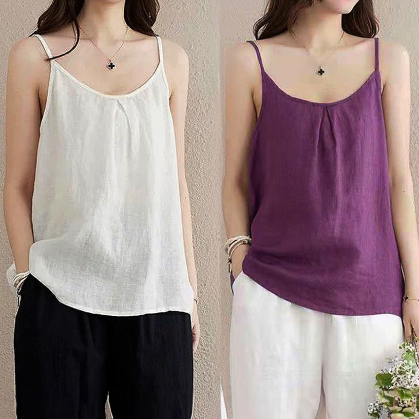 여성 여름 민소매 나시 티셔츠 루즈핏 레이어드 나시티 슬링퓨어린넨나시