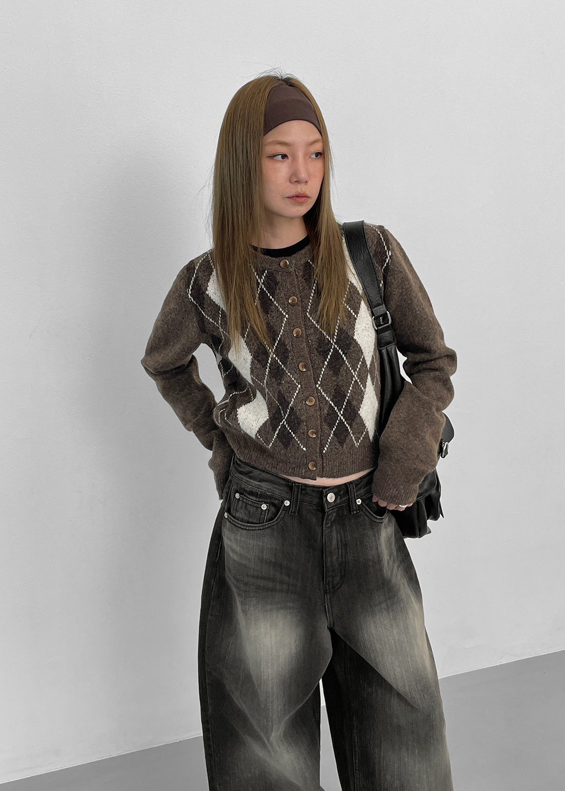 [1천장판매] 흐크 라운드 아가일 니트가디건