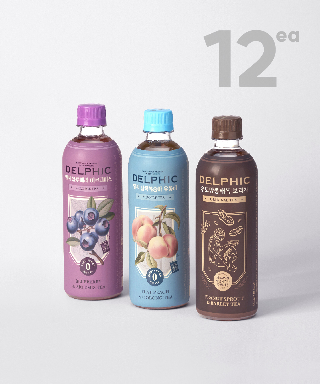 0kcal 델픽 아이스티 3종 500ml 12개 (복숭아, 블루베리, 우도땅콩)