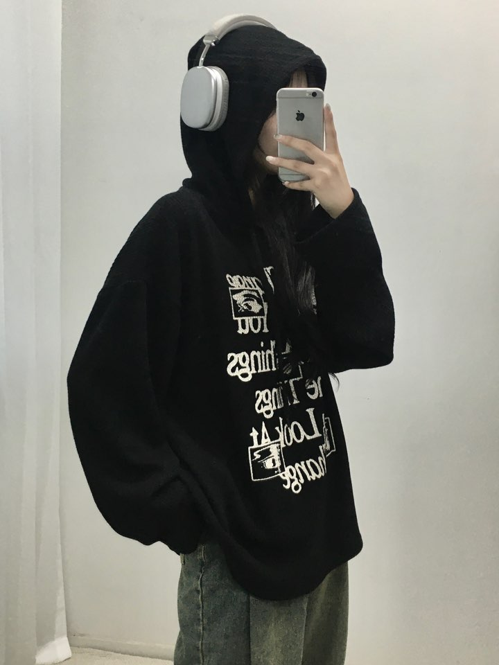 [커플룩/박시핏] 박시핏 프린팅 니트골지 후드티
