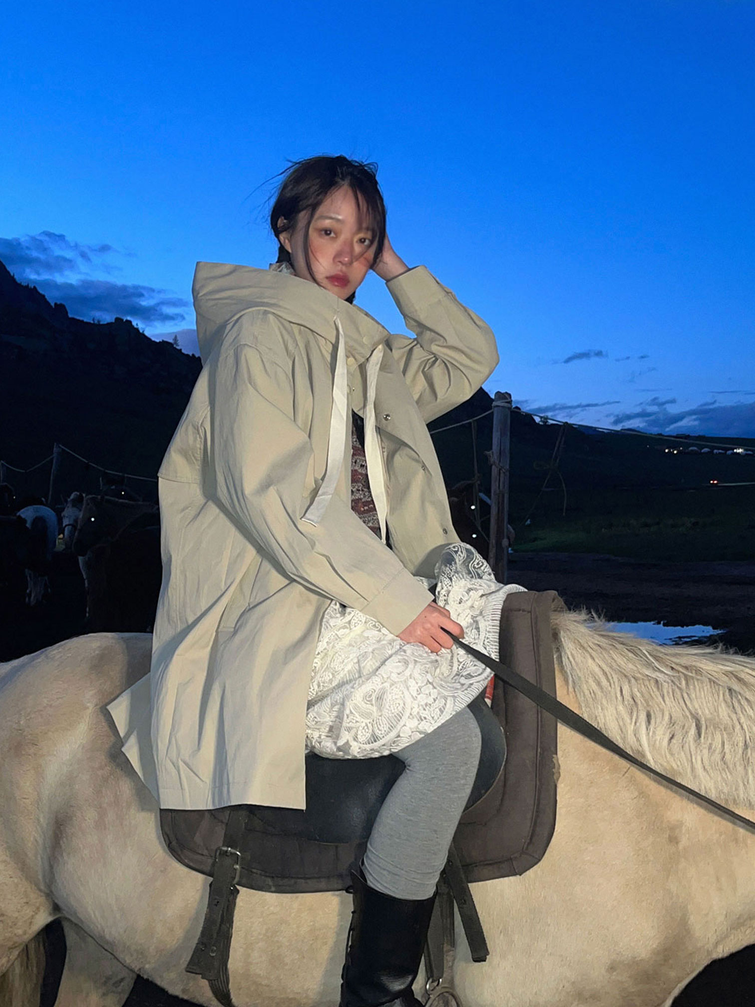 베이지 코튼 후드 롱CT