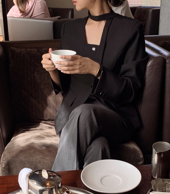 당일발송[🤍극찬후기🏆/타이블라우스][MADE] 드뮤어 트위드 타이 자켓