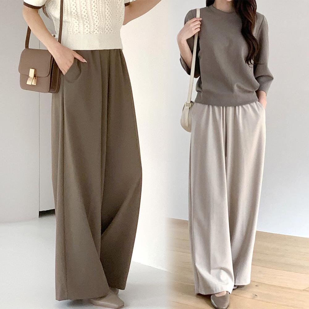 와이드 팬츠 찰랑 가을 여성 울혼용 밴딩 통일자 블랑 팬츠(3컬러)
