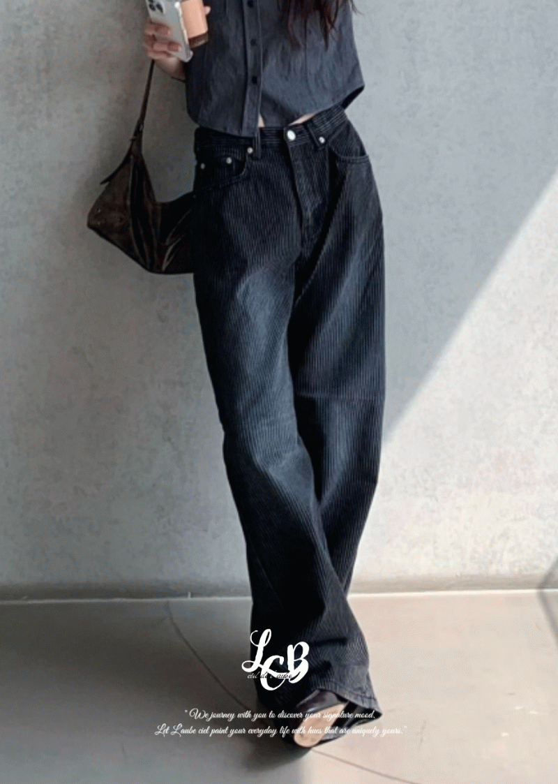 [ MD PICK ! ] 블랙 스트라이프 워싱 와이드 데님 PT