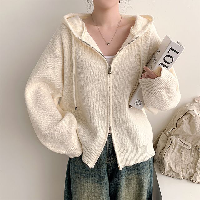 [가을겨울/고퀄리티] 호리 자수 투웨이 니트집업 오버핏 후드집업 니트가디건 (5color)