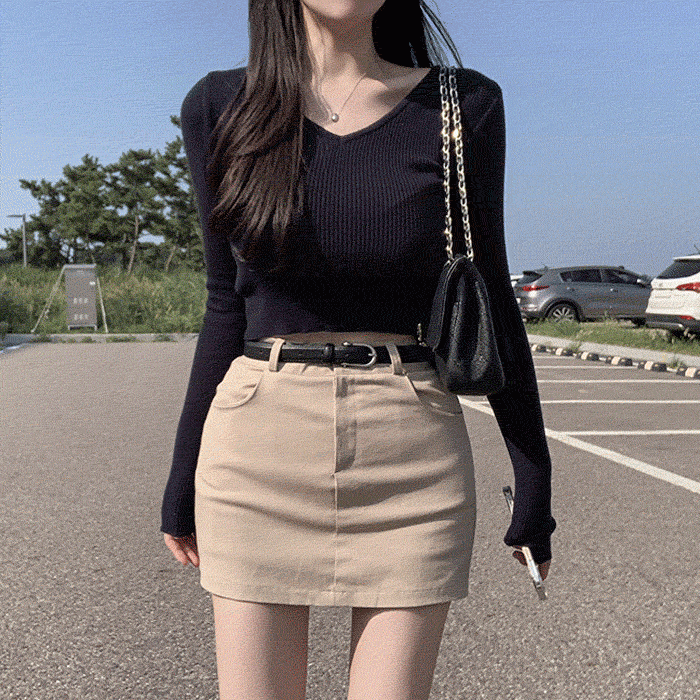 만능코디니트❣️ 어디든 잘어울려, 브이넥 골지 크롭니트 - 가을니트/봄니트/크롭니트/가을옷/딱붙는티셔츠