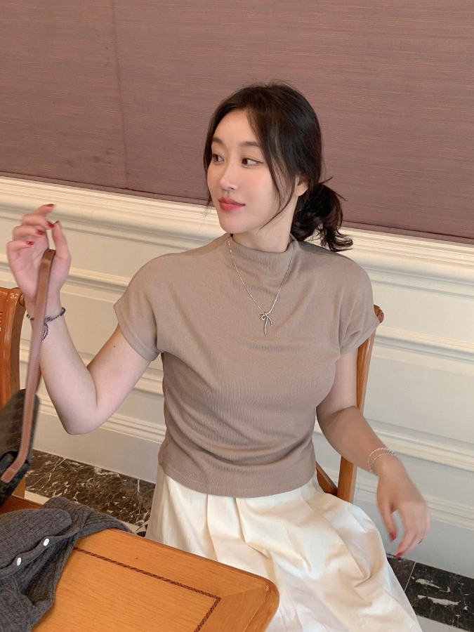 [하객룩/스판함유] 아이리스 반목 반팔 니트 티 3color