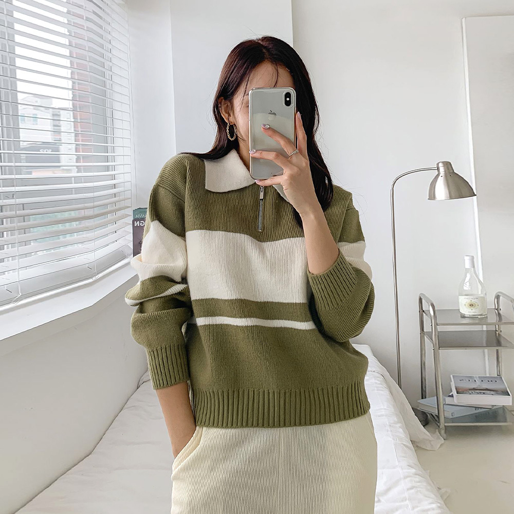 반집업 카라 배색 단가라 니트 티셔츠 캐주얼 -NT0020- 겨울