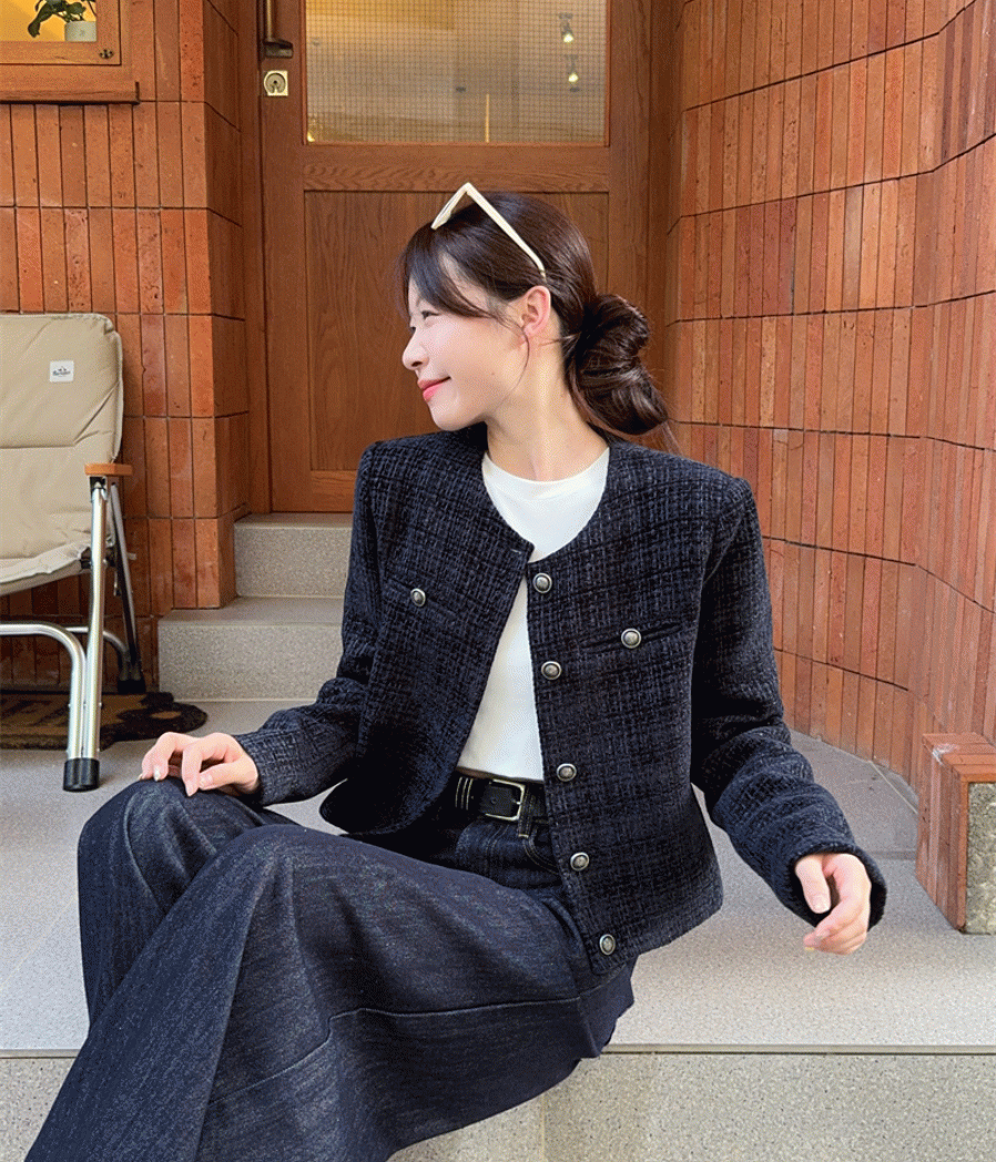 채스퍼❤️하객룩 라운드 버튼 긴팔 트위트 자켓 1color