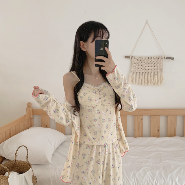 앙쥬 캣 골지 3종 브라캡 가디건 나시 긴바지 잠옷 세트