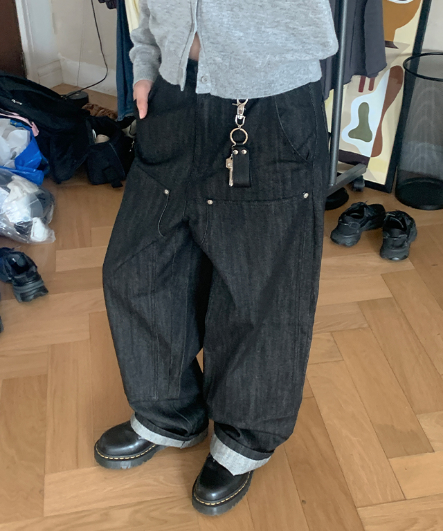 커정 더블니 생지 와이드 데님 팬츠(공용)