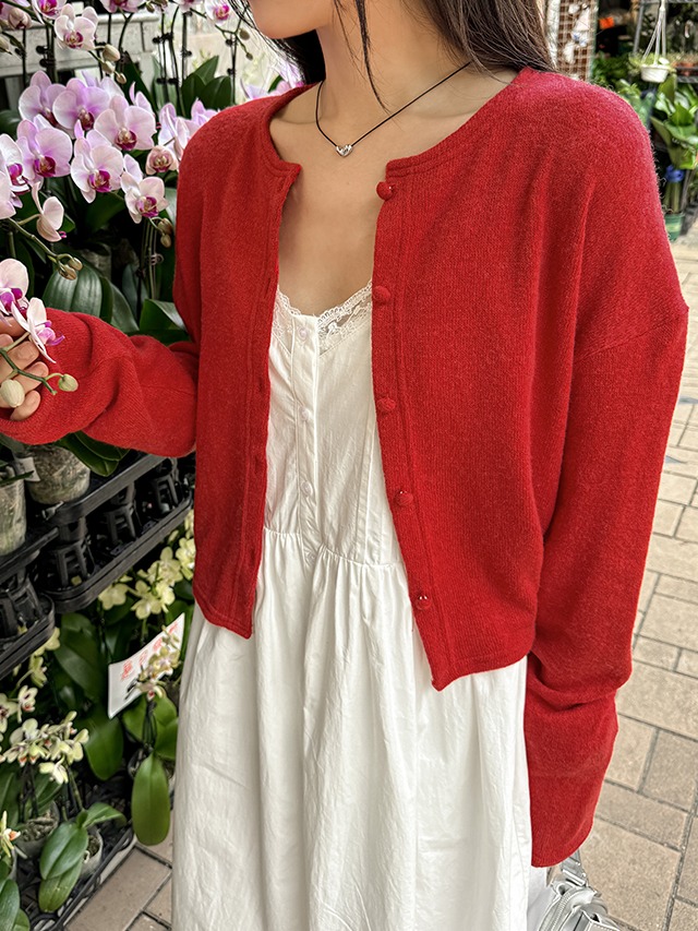 빅사이즈 55-99 로니벨 커버드 버튼 라운드 울 니트 가디건
