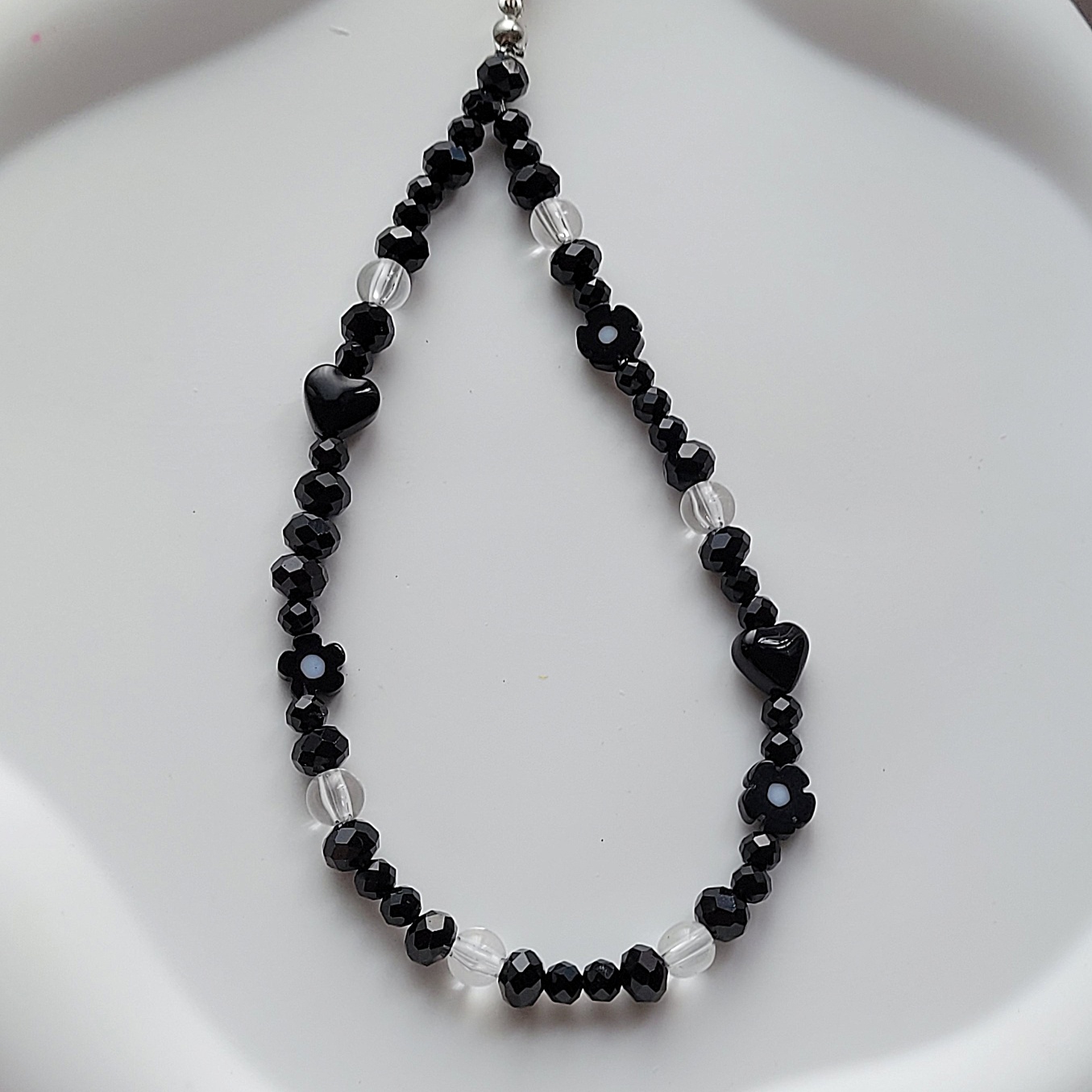 블랙론델플라워 핸드폰스트랩 비즈키링 키홀더 핸드폰 고리 줄