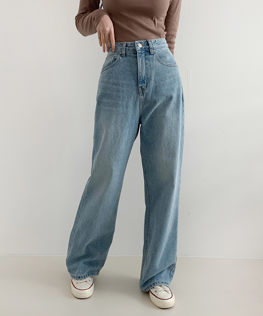 [하이웨스트/밴딩]연청 세미 와이드 허리밴딩 청바지 데님 팬츠 바지