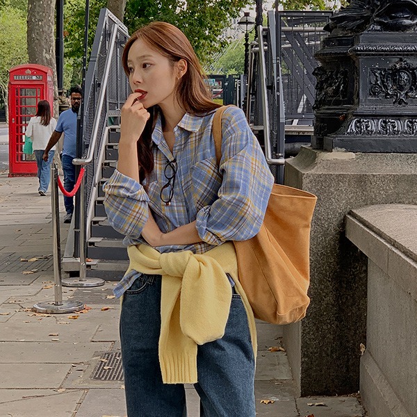 [얼굴반사판셔츠✨][간절기/활용만점] 뉴니브 포켓 체크 루즈핏 긴팔셔츠(44~88) (가을-체크남방-루즈핏셔츠-배색체크패턴-데일리룩-캐주얼룩-체형커버-포인트아이템-타탄체크)