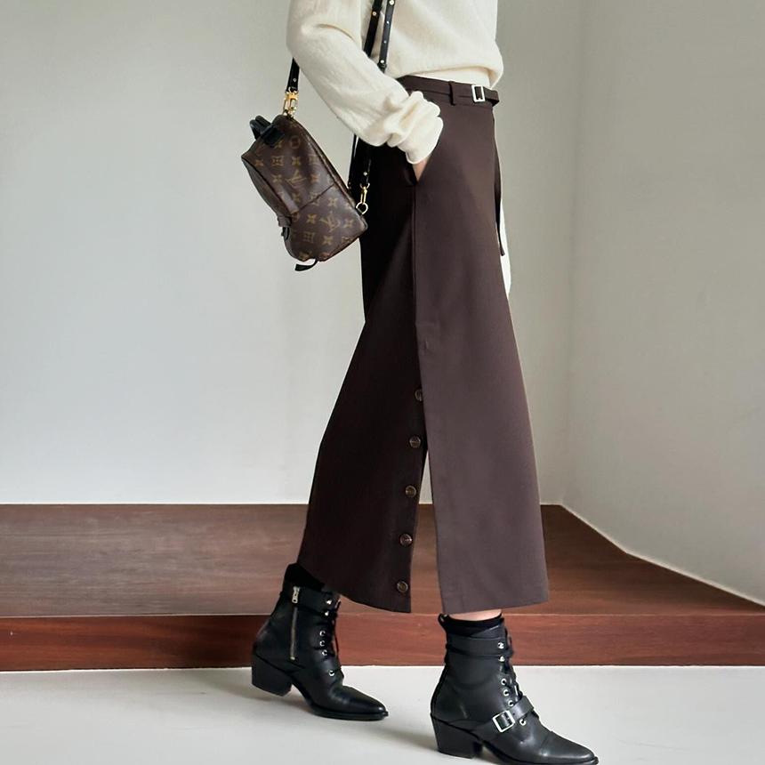 옆트임 단추 벨트 스판 롱스커트 치마(브라운/차콜/블랙)
