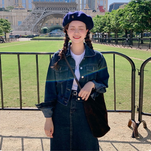 [SET] 에페르 데님 투피스 자켓 스커트 셋업 오버핏 크롭 청 자켓 롱 스커트 세트