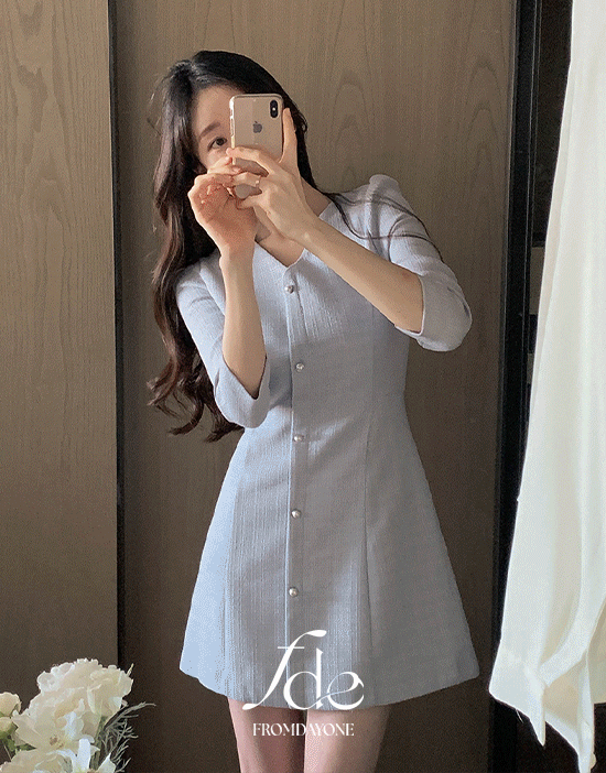 Made)올리비아 브이넥 트위드 미니원피스(버튼/퍼프/7부/A라인/데이트룩/하객룩/격식룩)