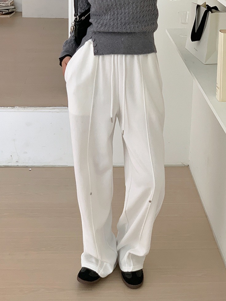 [숏/롱] [25-38] 리컨브 리벳 밴딩 와이드 팬츠 ( 봄-가을-겨울-데일리룩-데이트룩-캐주얼룩-캠퍼스룩-러블리룩-하객룩-격식룩-출근룩-빅사이즈-38사이즈-자체제작-편안한-신축성-캐주얼-통통녀 )