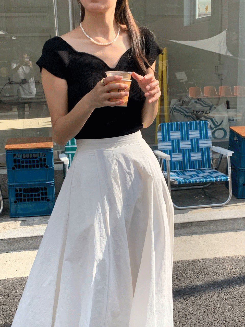 [MADE] 클리프 물결 하트넥 오프숄더 골지 여성 반팔 슬림 하객룩 반팔니트
