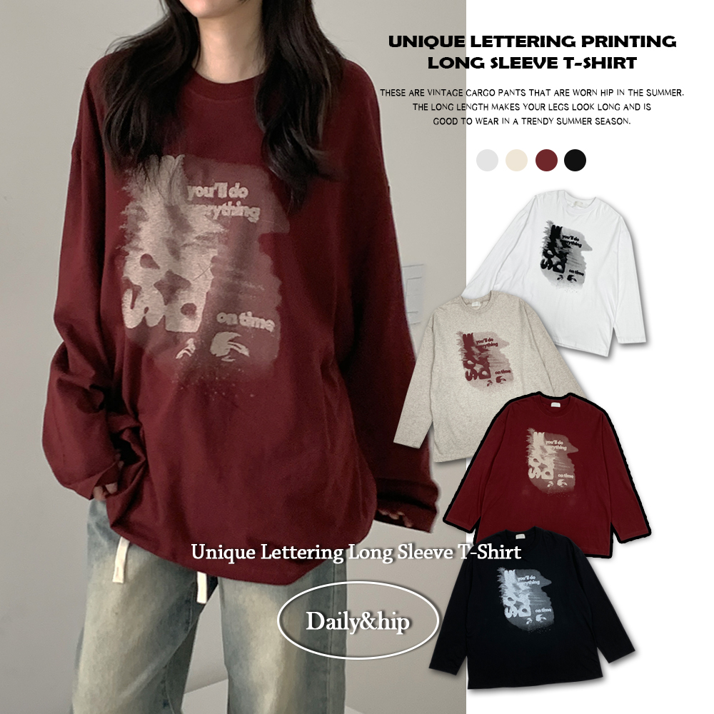 *긴팔ver.[힙빈티지/박시핏] *unisex* 웨인 라운드넥 빈티지 레터링 프린팅 오버핏 긴팔 티셔츠 롱슬리브 - 4color