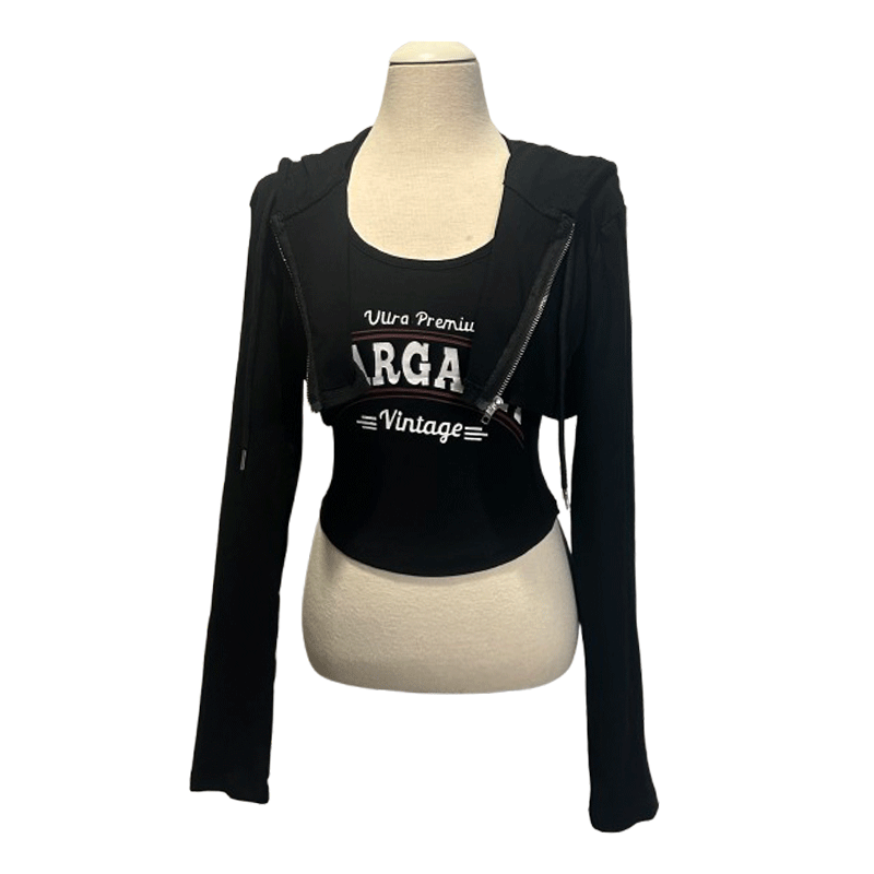 크롭 후드집업 레터링 나시 세트