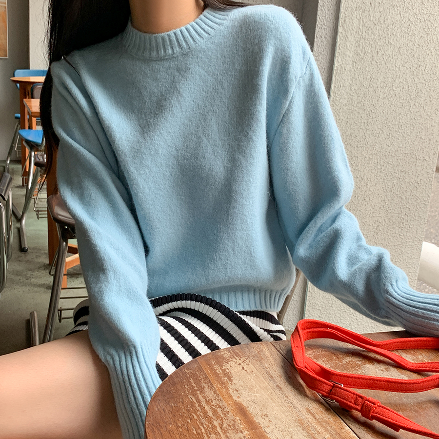 [9COLOR💙세미크롭] [당일발송] 포근촉감 라운드 크롭니트 봄신상 겨울신상 봄니트 무지니트 드뮤어룩 파스텔컬러 도톰니트 두꺼운니트 부드러운 세미크롭니트 여자니트