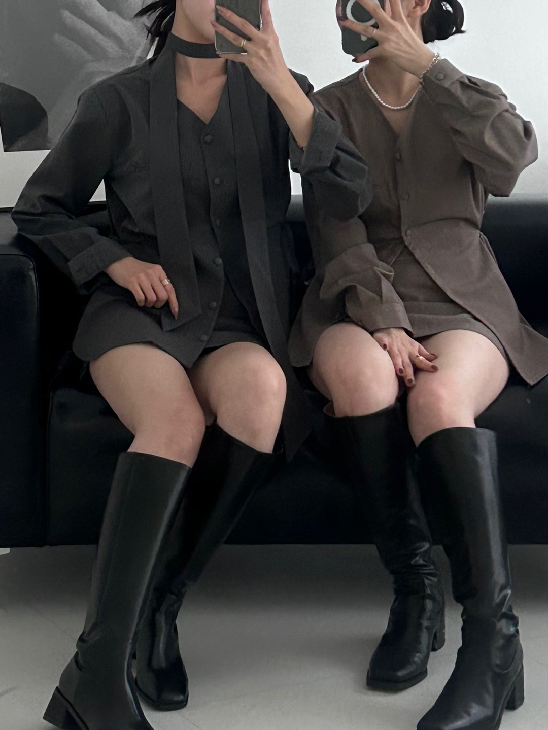 [SET] 테런 브이넥 타이 자켓 스커트 셋업