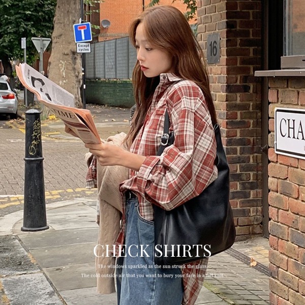 [벌룬소매/빈티지체크] 턴오프 포켓 체크 루즈핏 긴팔셔츠(44~99) (가을신상-가을셔츠-빅사이즈셔츠-빈티지체크-체크셔츠-체크남방-데일리룩-캐주얼룩-벌룬소매)