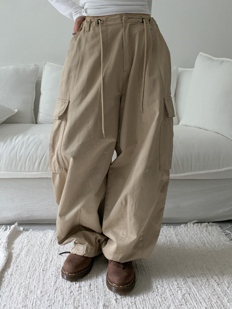 리시 스트링 코튼 와이드 카고 팬츠 3color