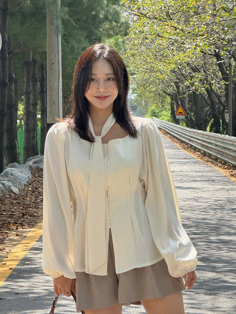 1446(빅사이즈) 테리 타이+ 스트랩 블라우스 세트[2coror/44-88]