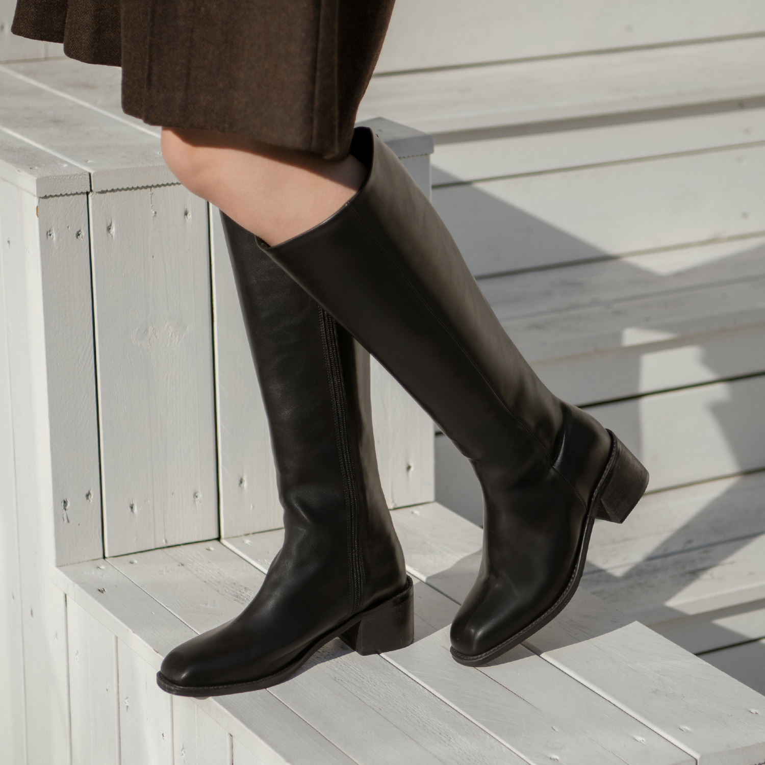 [부츠통++SIZE] 르아르 스퀘어 베이직 롱부츠 5cm